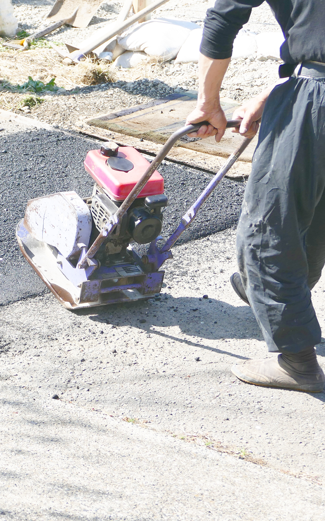 駐車場や構内道路、私道などのアスファルト舗装・コンクリート舗装工事を行っています。使用状況や耐久性を考慮した舗装設計を行い、見た目の美しさと実用性を兼ね備えた仕上がりを提供。部分補修から全面舗装まで柔軟に対応いたします。